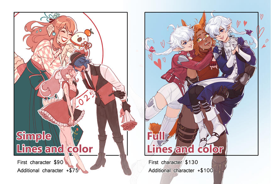 - Visual references are required for OCs! I can do design work (for an additional fee) on top of an illustration request but it requires more time and communication so please contact me to discuss anything like that first.